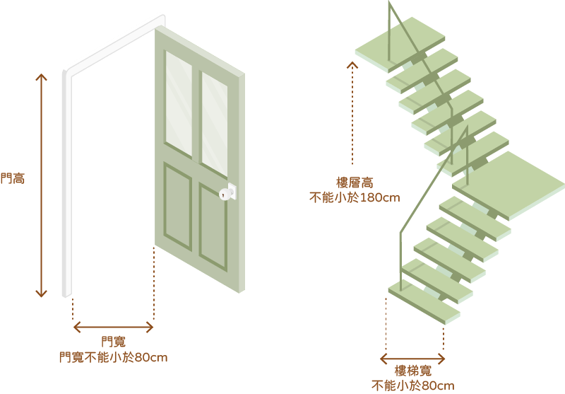 *樓梯扣掉扶手寬度小於80公分與天花板到樓梯最矮高度小於180公分請提供以下資訊: