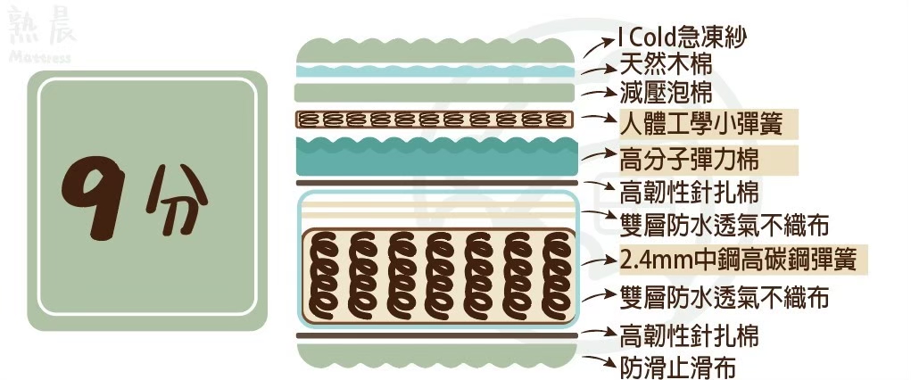 安心認證:材料測試證明 床墊保固:彈簧10年保固