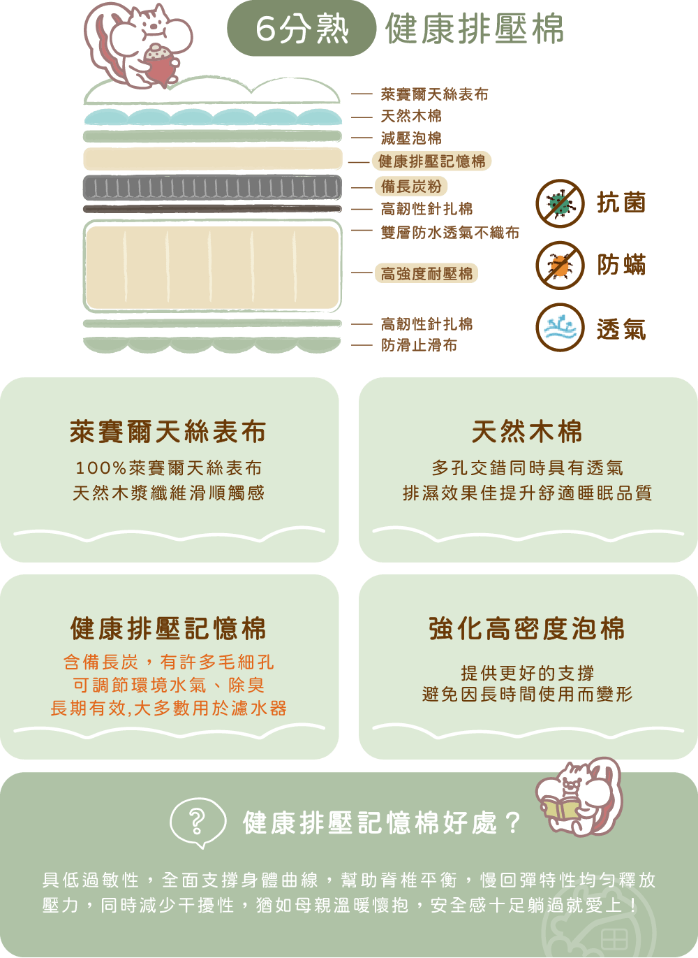 天然環保材質製成的最新一代天絲表布,不僅吸濕透氣、防蟎抗菌,且不易引起過敏反應,推薦給容易過敏怕熱的你。